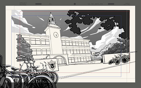 Background design, I was in charge of all the set design, following the art director's artistic vision. Here are a few excerpts, but the layouts are the most clear and illustrative examples of my work.